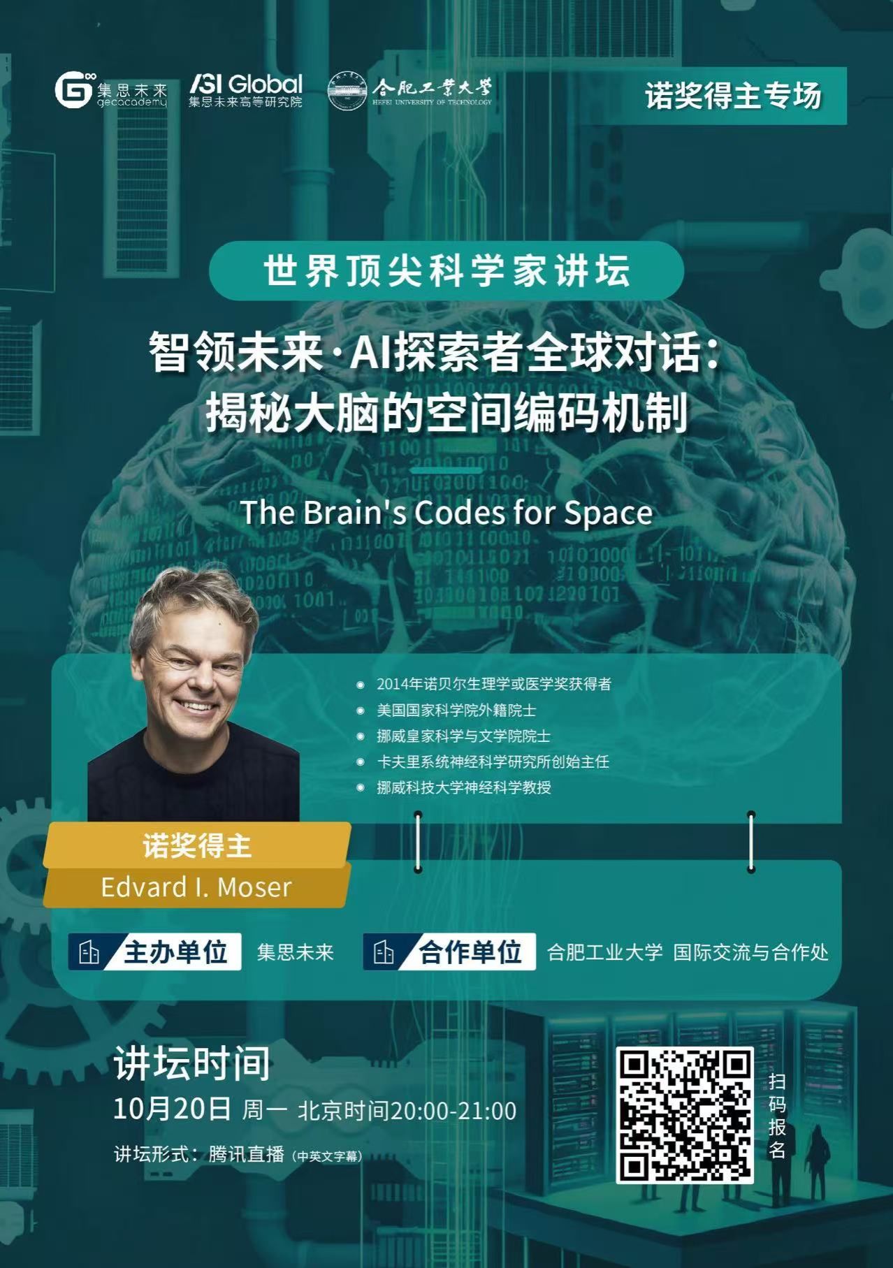 为帮助我校师生深入理解大脑认知功能的前沿研究,拓展对大脑空间定位与记忆机制的认识,我校联合集思未来共同邀请世界著名神经科学家、2014年诺贝尔生理学或医学奖得主、现任挪威科技大学神经科学教授爱德华·莫泽(Edvard I. Moser)教授为我校师生带来精彩主题讲座,欢迎广大师生积极报名参加!