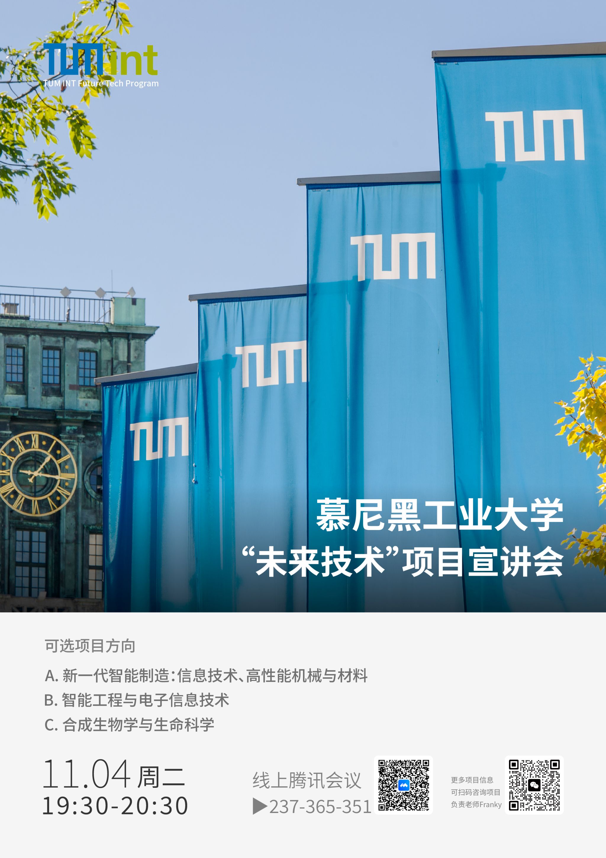 2026年寒假慕尼黑工业大学未来技术项目招生宣讲会将于线上举行,现将有关事项通知如下: